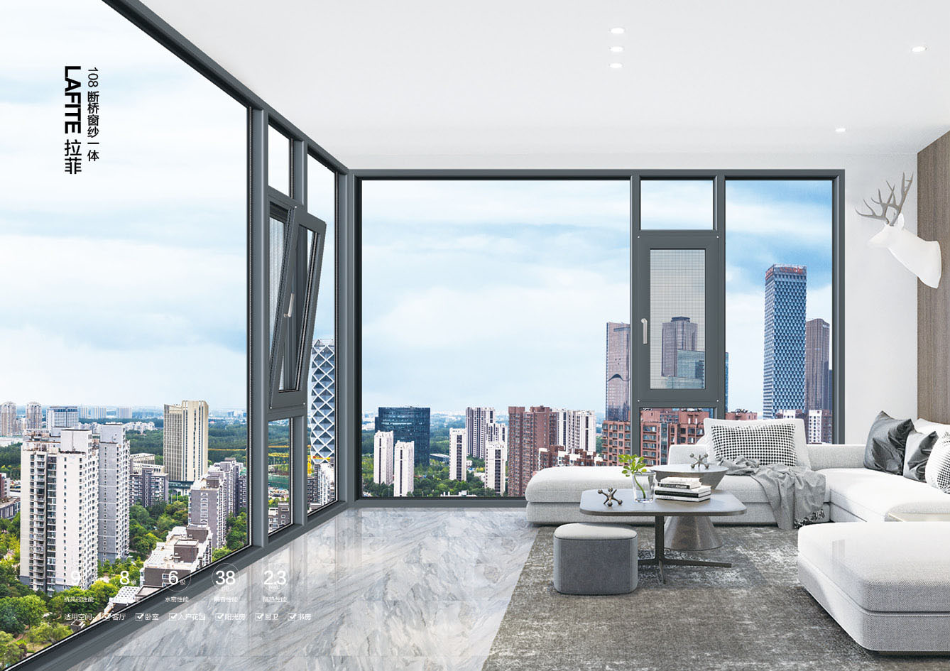 拉菲108斷橋平開窗紗一體