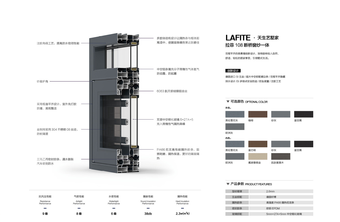 產(chǎn)品型號:拉菲108斷橋平開窗紗一體