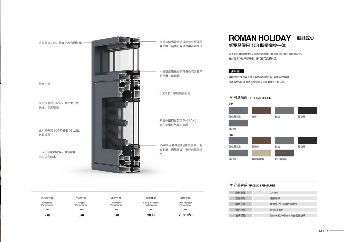 產(chǎn)品型號(hào):新羅馬假日108斷橋窗紗一體